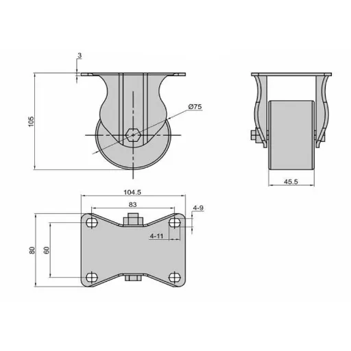 Caster Wheel SK6-T75105P