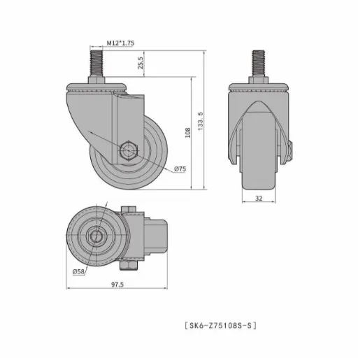Caster Wheel SK6-Z75108S-S