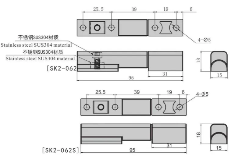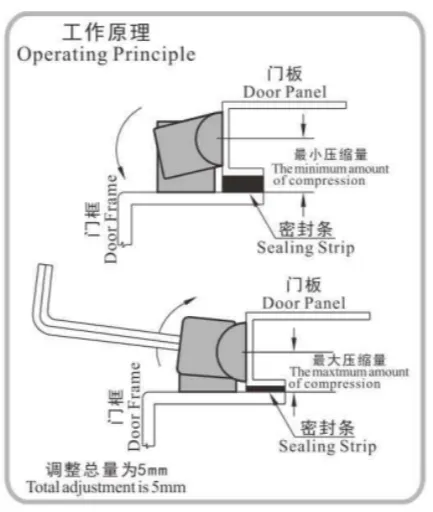 - Built-in semi-circular adjustable block, adjustable for the compression force of the doo