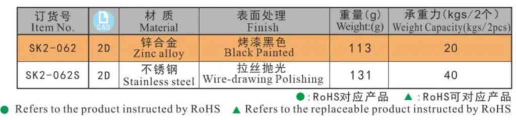 - Zinc Alloy(ZDC),Stainless Steel(SUS304)