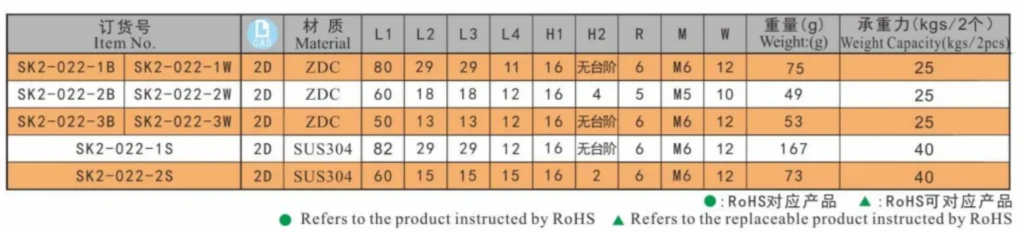 - Aleación de zinc(ZDC),Acero inoxidable(SUS304)